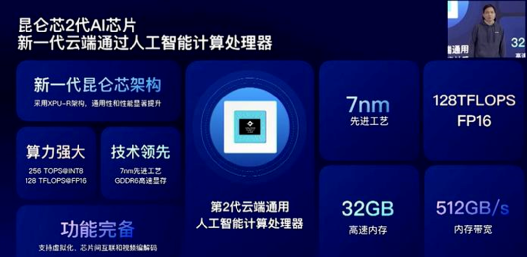 第一代昆侖芯于2020年開始大規(guī)模部署,采用14納米工藝和先進的HBM內(nèi)存、2.5D封裝技術(shù)。這款芯片剛量產(chǎn)就在百度數(shù)據(jù)中心里部署了超過2萬片。一年后,第二代昆侖芯量產(chǎn),采用了更先進的7納米工藝和XPU第二代的架構(gòu)。同時,它也是業(yè)界第一顆采用GDDR6高速顯存技術(shù)的AI芯片。目前,昆侖芯科技正在研發(fā)更先進的第三代AI芯片,針對高階自動駕駛系統(tǒng),未來可能會推出定制的車規(guī)高性能SoC(系統(tǒng)級芯片)。